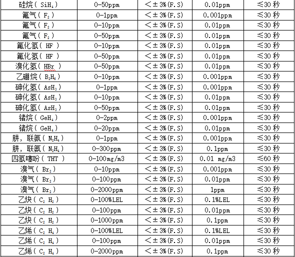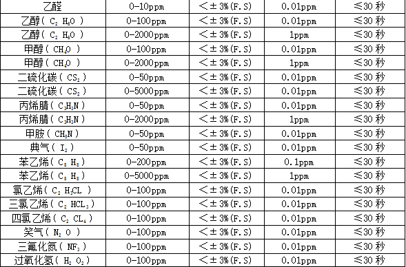 ²¿·Ö¿É¼ì²âÆøÌåÁÐ±í£º